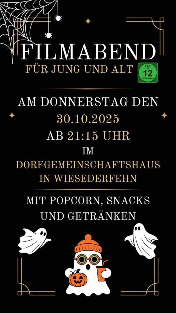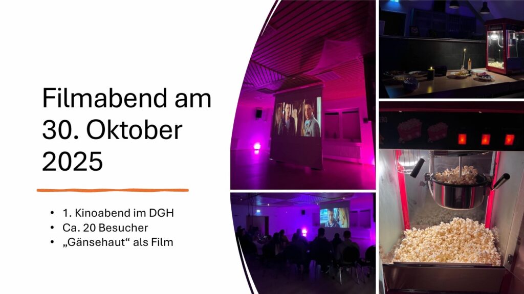 Am 30.10.25 fand unser 1. Filmabend im DGH statt. In spannender Atmosphäre kam unsere neue „Popkorn-Maschine“ mit vollem Erfolg zum Einsatz. Fortsetzung folgt!